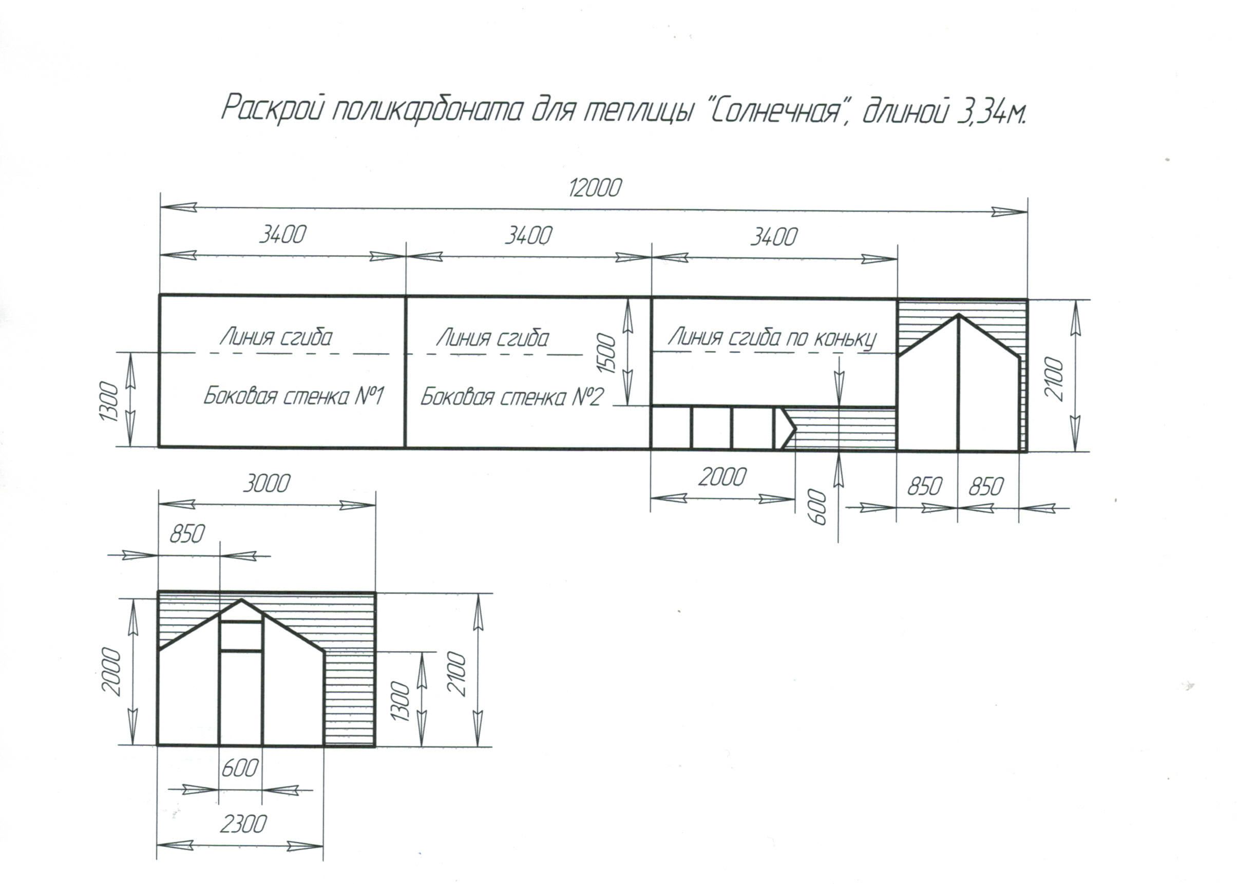 Схема раскроя п/к для теплицы "Солнечная"