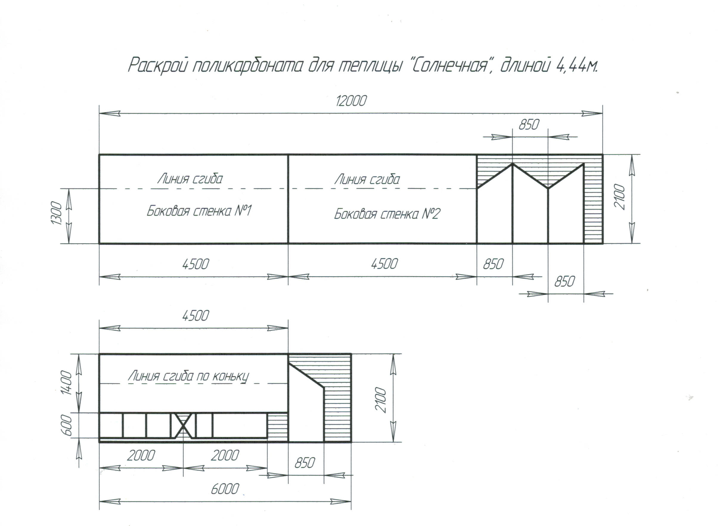 Схема раскроя п/к для теплицы "Солнечная"