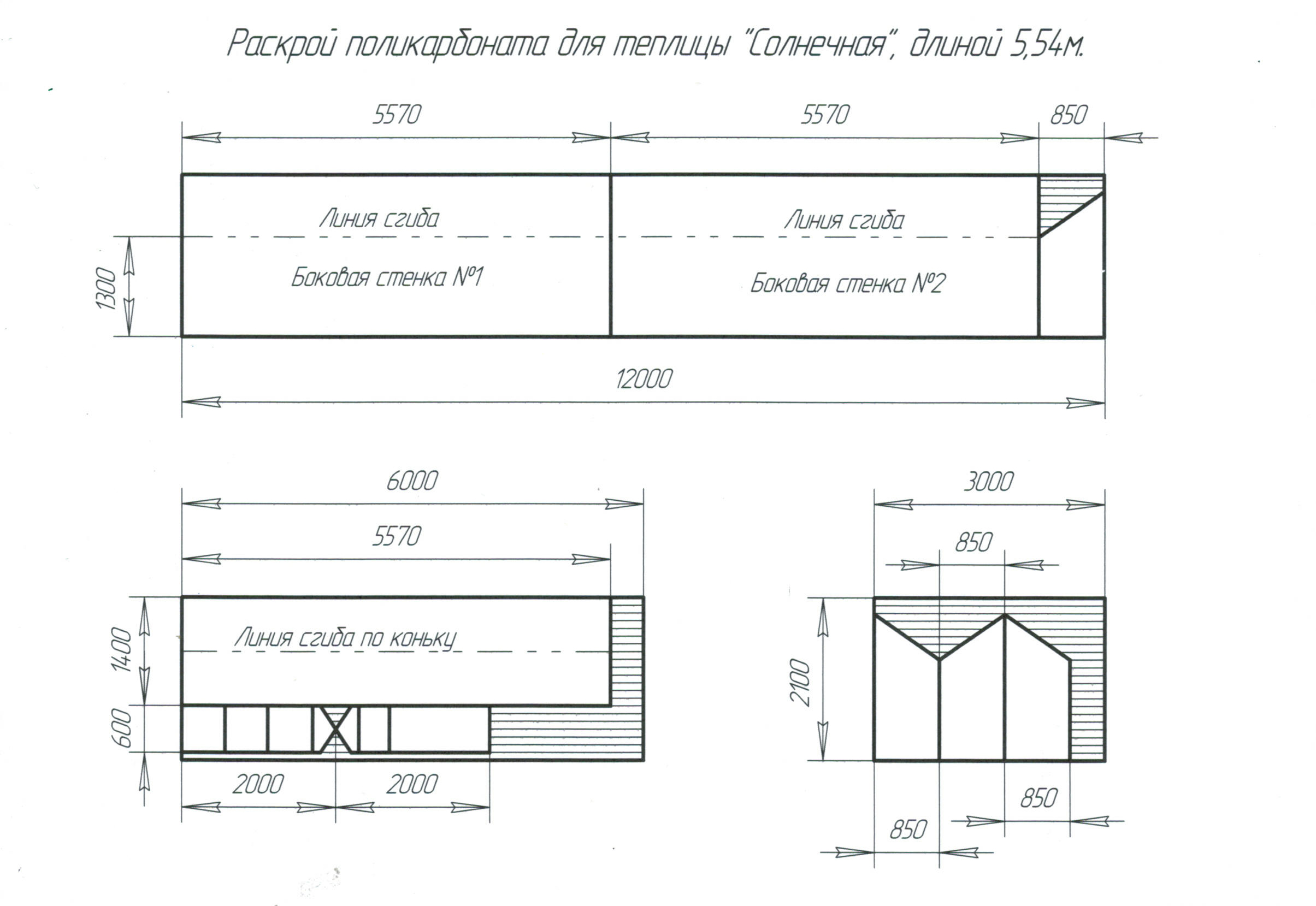 Схема раскроя п/к для теплицы "Солнечная"